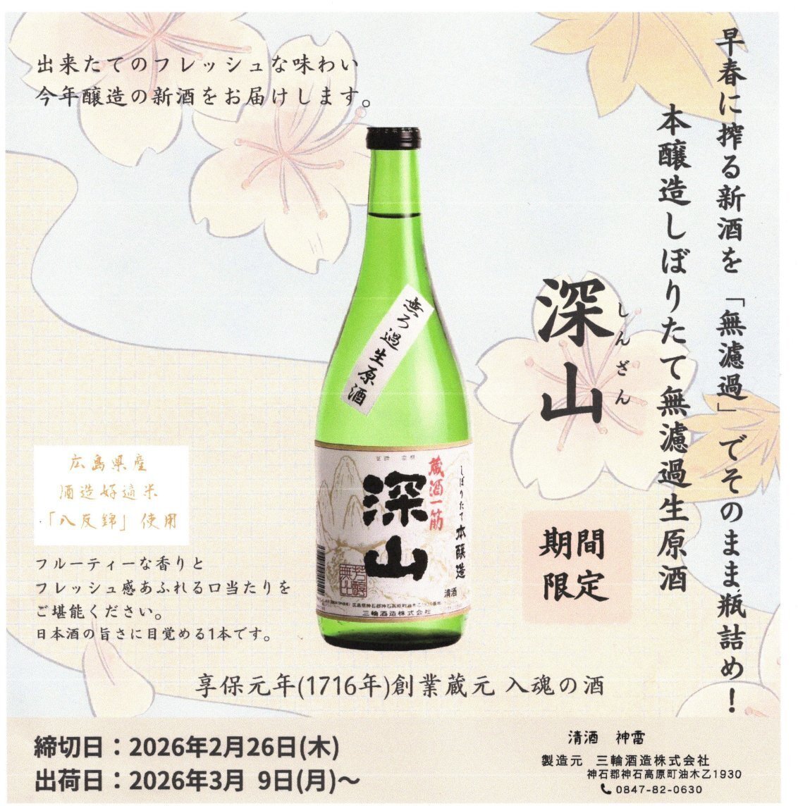 三輪酒造のご予約限定の新酒です。